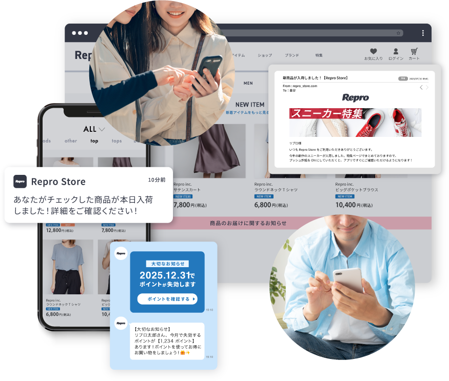AIフレンドリーなデータ構造を基盤にアプリ、Web、メール、LINEを統合したマーケティングオートメーションを実現します。