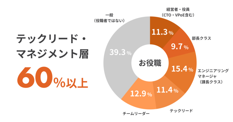 11月1日(金)時点での本カンファレンスへの申込者数は1,200人を突破し、そのうち60%以上がテックリード・マネジメント層以上の方です。