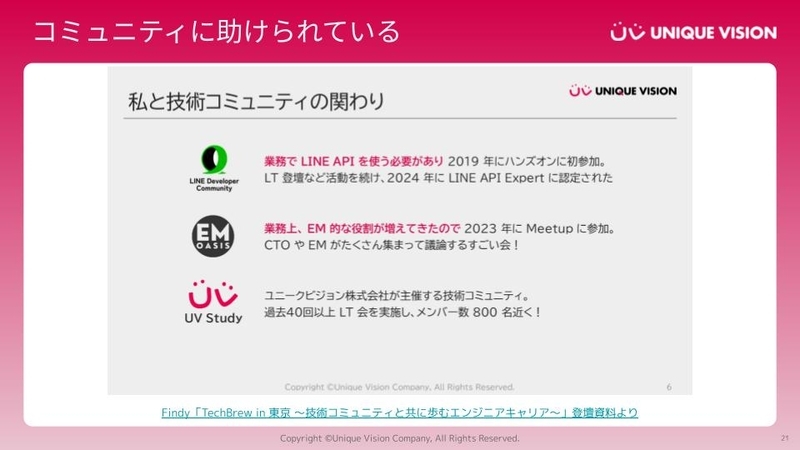 あとは技術トレンドの進化スピードも非常に面白いところ。キャッチアップしつづける体力と審美眼が求められるんですけど、コミュニティがそれを助ける良い働きをしてくれているなと感じています。私はコミュニティに助けられながら成長していって、入社から3年たってようやく社内MVPであったり、コミュニティから認定を受けたりというような活躍ができるようになりました。