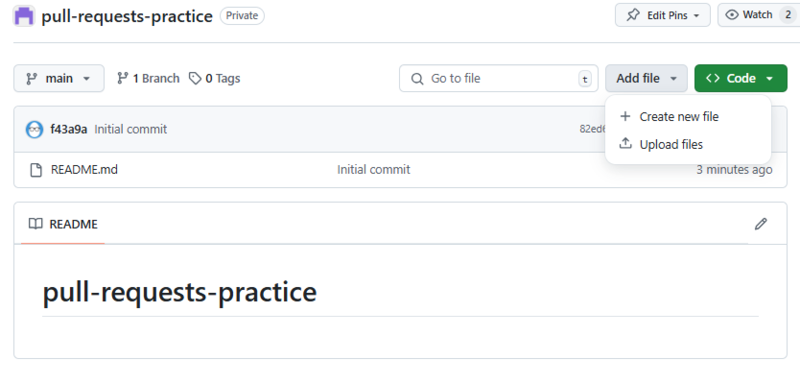 - Create a new branch for this commit and start a pull requestを選択すると、新しいブランチが作れる