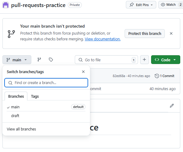- ブランチ名を設定する(初期値が自動入力されるが「draft」に直した)
