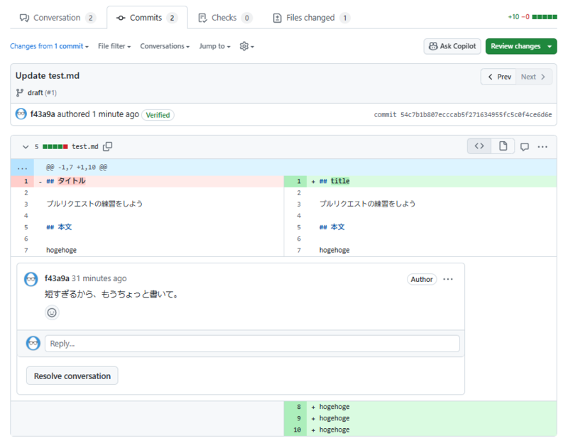 GitHubの便利だと思ったところ: “修正後”の状態を確認しながら修正できること