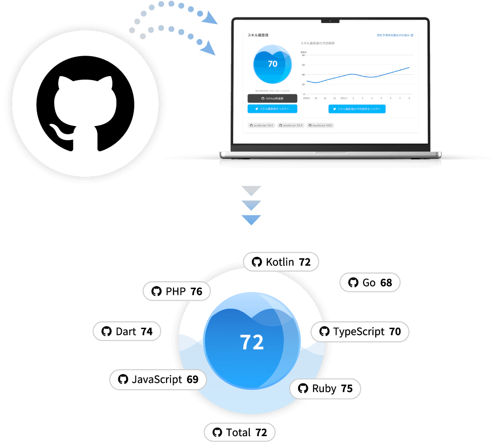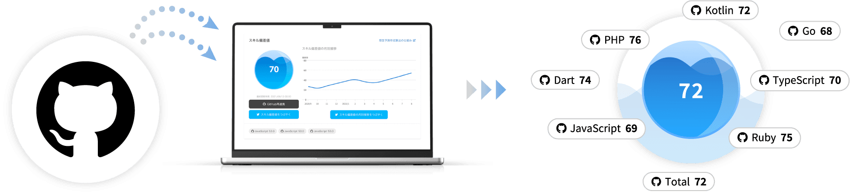 スキル偏差値をもとに自分にマッチした企業からスカウトが届きます。