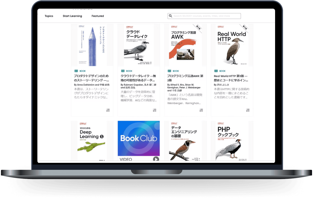 本プログラムでは、O’Reilly 社が米国で個人向けに提供している機能をそのまま利用いただけます。
