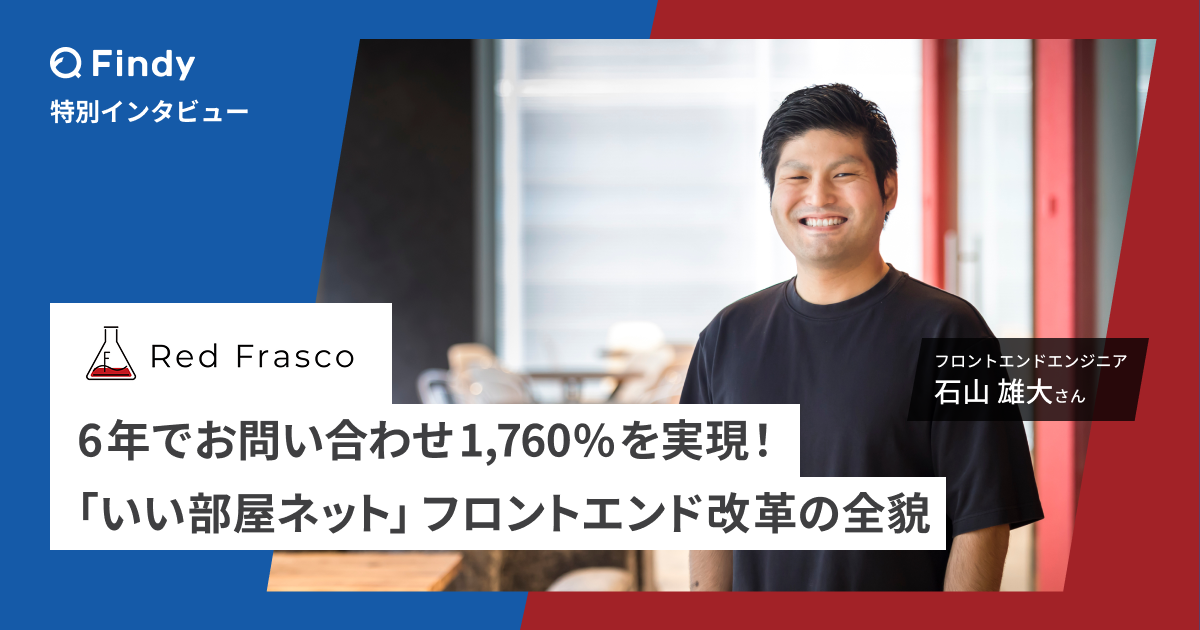 日本の賃貸市場という巨大なインフラを支えながら、技術負債に苦しむ現状を打破するため、ログイン機能の廃止による全ページCDNキャッシュ、開発基盤整備による4年で2,000回リリース、そしてGraphQLによるWeb/アプリ共通化など、大胆かつ泥臭い施策を重ねながら、実現したサイトの大幅リニューアルはどのように進められたのでしょうか。創業期から一貫して「事業のために技術を尽くす」考え方を大切にしてきたRed Frascoの哲学を体現し、主にフロントエンドの改善を牽引した石山雄大さんに、リニューアル成功までの全貌を伺いました。